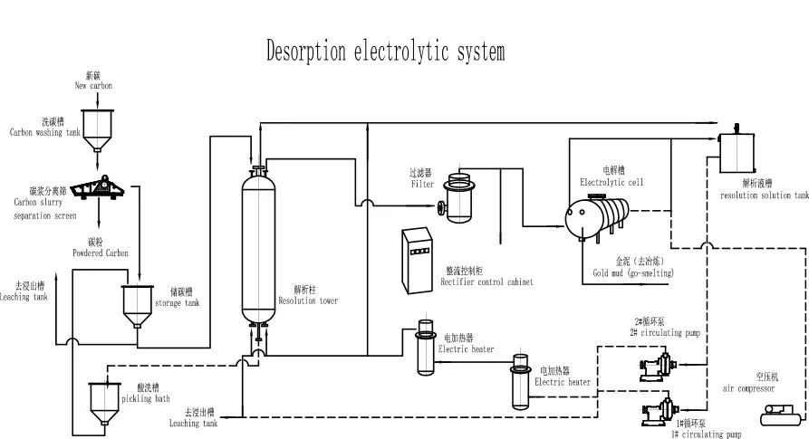 Srpski језик Būdamas įgudęs gamintojas, „Epic“ siekia pasiūlyti aukščiausios kokybės desorbcijos elektrolitinę sistemą. Pažadame suteikti jums geriausią palaikymą po pardavimo ir greitą pristatymą. In adding more easly by activated carbon adsorption desorption system of anion, thus the Au(CN)2"replacement, realize the desorption of gold. The liquid obtained by desorption of gold-loaded carbon is recovered by ionization to obtain solid gold. Equipment characteriatios
